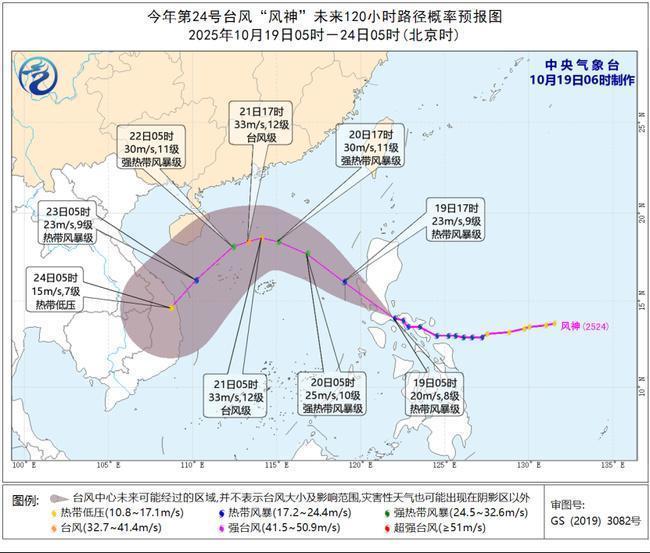 中央气象台10月19日6时发布蓝色风暴预警:第19号台风。今天(19日)早上5点,其中心位于菲律宾吕宋岛,北纬14.0度,东经122.0度。中心附近最大风力为8级(20米/秒),中心最低气压为995 hPa,7级风圈半径为150-180公里。预计“风神”将以每小时30-35公里的速度向西北方向移动,傍晚进入南海东部海域,并逐渐增强。最强可达严重热带风暴级或台风级(30-35米/秒,11-12级)。 21日当天,受南方冷空气影响,将转向西南前往南海北部地区。强度会逐渐减弱。强风预报:受冷空气和“风神”共同影响,19日08:00起20日至08:00,台湾海峡、巴士海峡、南海北部和中部、西沙群岛、中沙群岛及黄岛附近海域、北部湾、琼州海峡、东海西部、浙江沿海、奥贝斯、浙江沿海、浙江沿海、 浙江、台湾沿海、福建沿海、广东沿海、广西沿海、海南岛沿海等海域将有6~8级、阵风9~10级大风。东海西部、浙江沿海、台湾海峡、台湾西部沿海、福建沿海、广东东部沿海、华南东北部部分地区将有9~10级风、阵风11~12级。降水预报:19日08:00至20日08:00,台湾岛中部和北部地区有大到大雨。其中,台湾岛东北部部分地区将出现强降雨(100~150毫米)。国防指导:政府有关部门要按照职责做好防暴和应急工作。相关水域水上作业和过往船舶必须回港避风,加强港口设施,防止船舶抛锚、搁浅、碰撞。停止大型户外聚会和高空作业等危险户外作业。加固或拆除容易被风吹走的结构。人们不应该随心所欲地外出。应尽可能将它们保存在密闭且安全的地方。确保眼标和儿童留在家中最安全的地方,及时将人员转移到危险建筑物内。当风暴中心经过时,空气会下降或在一段时间内保持静止。请记住,强风会突然吹来,您应该继续留在安全的地方避难。相关地区要注意防范山洪和地质灾害大雨可能引起的自然灾害。