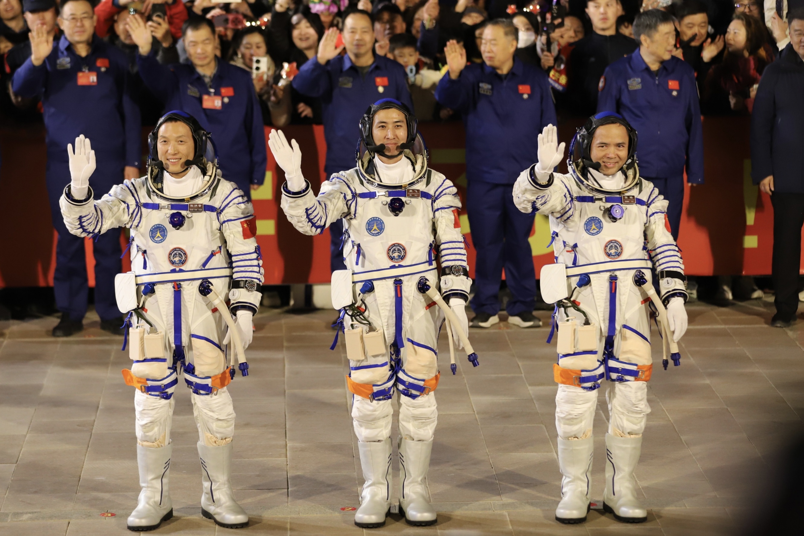 神舟二十一号航天员张璐、吴飞、张宏章被勒令终止。人民网记者 糜媛 摄 人民网酒泉10月31日电(记者糜媛 赵竹青)据中国载人航天工程办公室消息,北京时间2025年10月31日20时48分,神舟二十一号载人航天员乘组仪式卫星发射中心。 20时49分,三名航天员张璐、吴飞、张宏章下达了终止命令。空间站应用发展阶段任务指挥部相关成员、航天科技人员以及各族代表在现场协助航天员工作。目前,神舟二十号航天员组已在空间站驻扎超过180天,正在为迎接神舟二十一号航天员的到来做好准备。